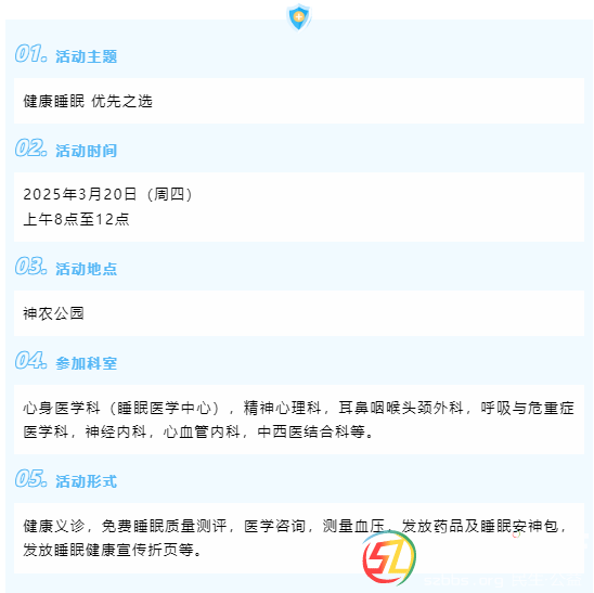本帖最后由 開心一點(diǎn) 于 2025-3-18 15:17 編輯 3月20日(周四)隨州市中心醫(yī)院睡眠醫(yī)學(xué)中心將舉行“世界睡眠日”大型義診活動具體預(yù)告如下↓↓↓ 世界睡眠日是一個(gè)提醒我們關(guān)注睡眠健康的契機(jī),睡眠醫(yī)學(xué)中心 ...