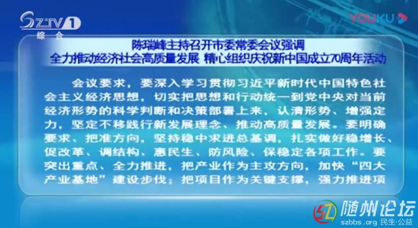 ——視頻來源:云上隨州全力推動經(jīng)濟社會高質(zhì)量發(fā)展 精心組織慶祝新中國成立70周年活動 隨州日報訊(全媒記者張琴、實習(xí)生葉子?。?月9日,市委書記陳瑞峰主持召開市委常委會議,傳達(dá)學(xué)習(xí)7月30日中共中央政 ...