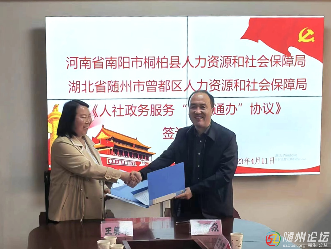 隨州論壇 (通訊員魏雪峰 閤浩)4月11日上午,隨著曾都區(qū)人社局和桐柏縣人社局雙方相關(guān)負(fù)責(zé)人在“跨省通辦”協(xié)議上簽字落地,標(biāo)志著我區(qū)開(kāi)啟了人社政務(wù)服務(wù)高頻事項(xiàng)“跨省通辦”的新模式。今后,凡是涉及 ...